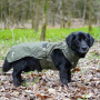 Dank der ergonomischen Passform und mehrfach verstellbaren Gurte lässt sich das Geschirr optimal an deinen Hund anpassen. Zwei Steckschnallen ermöglichen ein schnelles Anziehen, während die Gurte im Hals- und Brustbereich individuell einstellbar sind. Der Mantelkragen kann mit einem Kordelzug angepasst werden, und auch die Beinschlaufen sind verstellbar.