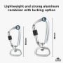 - Leichter und starker Aluminiumkarabiner mit Verriegelungsoption (2 Größen)