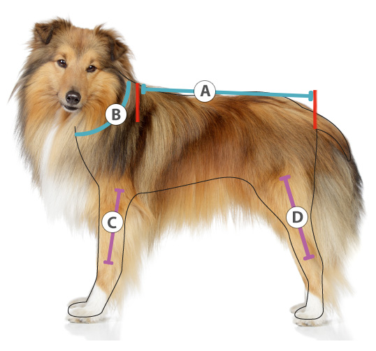Die richtig Größe ermitteln Sie, indem Sie mit einem Maßband vom Hals/Nacken (in Höhe der Schulterblätter) über den gesamten Rücken bis zum Schwanzansatz messen.