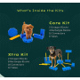 Dank der rutschfesten Oberfläche und der robusten Konstruktion kannst du die einzelnen Komponenten flexibel kombinieren und das Training individuell anpassen. FitKinect eignet sich für Anfänger, sportlich aktive Hunde und auch für die Rehabilitation – vom Muskelaufbau über Gangtraining bis zur Reduktion von Steifheit.