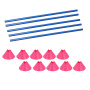 Das Hürden-Set besteht aus insgesamt 5 Hürden (10 kleine Kegel + 5 Stangen)