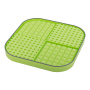 Dank der rutschfesten Unterseite bleibt die Matte an Ort und Stelle. Sie ist besonders groß und damit ideal für größere Hunde oder längeren Schleckspaß. Erhältlich in den Farben Grün und Türkis.