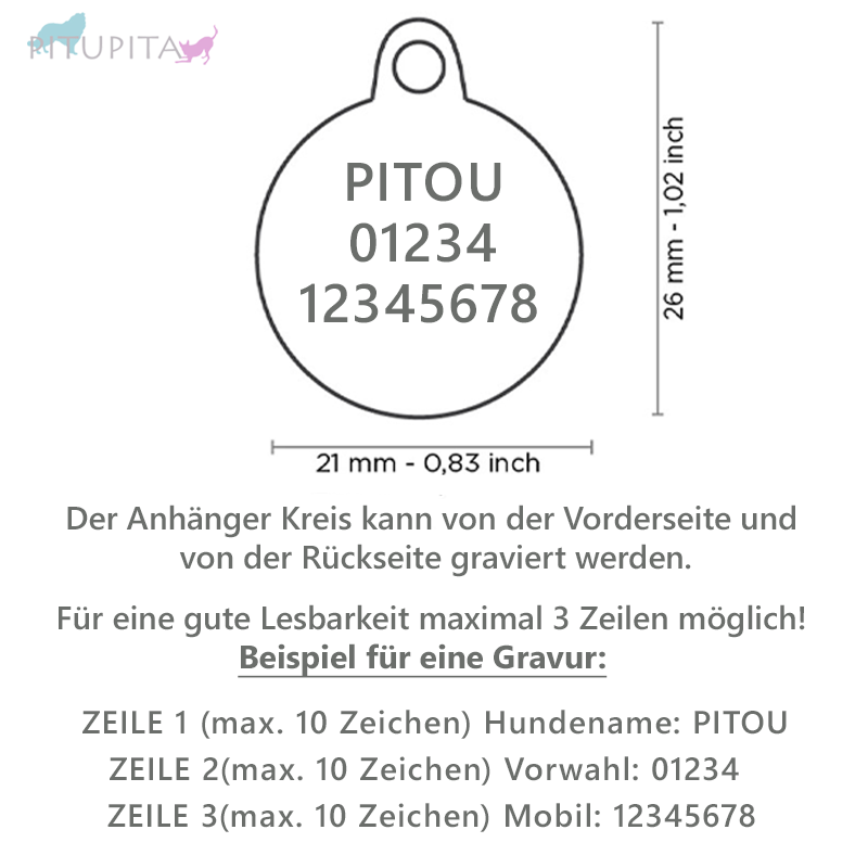 Nach Deinem Kauf gravieren wir den Anhänger genau nach Deinen Vorgaben. So entsteht ein individuelles Unikat, das perfekt auf Dich und Deinen Vierbeiner abgestimmt ist.