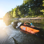 Getestet im offenen Wasser und in Schwimmbecken, wurde die Weste mit einem Testsystem entwickelt, das den ISO-Normen für menschliche Rettungswesten nahekommt. Sie ist mit einem stabilen Griff, reflektierenden Streifen und Leinenbefestigungspunkten ausgestattet.