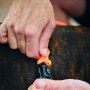 Erhältlich in den Farben schwarz/orange und türkis in den Größen 1-8.