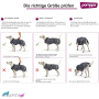 | Größe | Rückenlänge in cm | Halsumfang in cm | Brustumfang in cm |