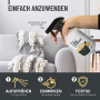 Hinweis: Nicht direkt auf Haustiere sprühen. Das Spray vor der ersten Anwendung an einer unauffälligen Stelle auf Materialverträglichkeit prüfen.