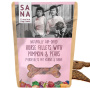 Hochwertiges Pferdefleisch vereint mit gesunden Superfoods, ohne Zusätze wie Mais, Weizen oder Soja. In unserer eigenen Manufaktur schonend luftgetrocknet für optimale Nährstoffe. Lokal bezogen und 100% rückverfolgbar. Veredelt mit natürlichem Glycerin aus Rapsöl für eine weiche, zähe Konsistenz. Ein unwiderstehlich leckerer und gesunder Snack für deinen Hund, ideal für Allergiker und Hunde jeden Alters.