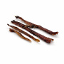 Unser Straußen-Schlundfleisch ist ein knackiger Snack für zwischendurch – besonders beliebt bei kleinen und älteren Hunden. Die luftgetrockneten Streifen sind etwa 15–35 cm lang und sorgen für genüsslichen Kauspaß, der ganz nebenbei noch die Kaumuskulatur stärkt.